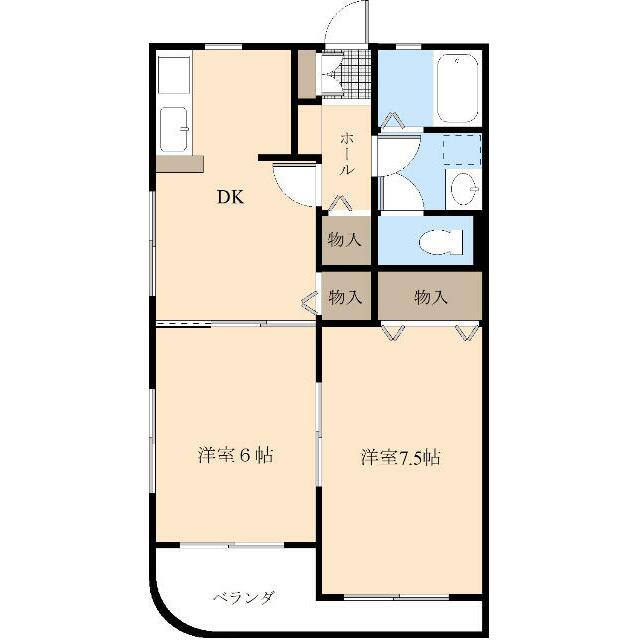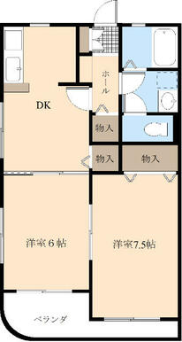 | 間取り | 2DK(洋室6 DK7.5 洋室7.5) | 主要採光面 | 南 |